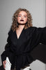 A line, high collar coat. Wide sleeves, structured and perfect for spring. Comes with a belt.