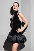 A luxurious velour and velvet halter-neck dress designed to make an elegant statement. The silhouette features a softly draped satin overlay that flows over a bubble hemline, creating a sculptural yet fluid shape. Fastened with a delicate button closure at the back of the neck, this piece blends refined craftsmanship with timeless allure, perfect for evening occasions or modern soirées.
