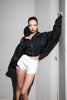Mini shorts available in two lenghts and two colors. Structured to hold shape, side zipper.